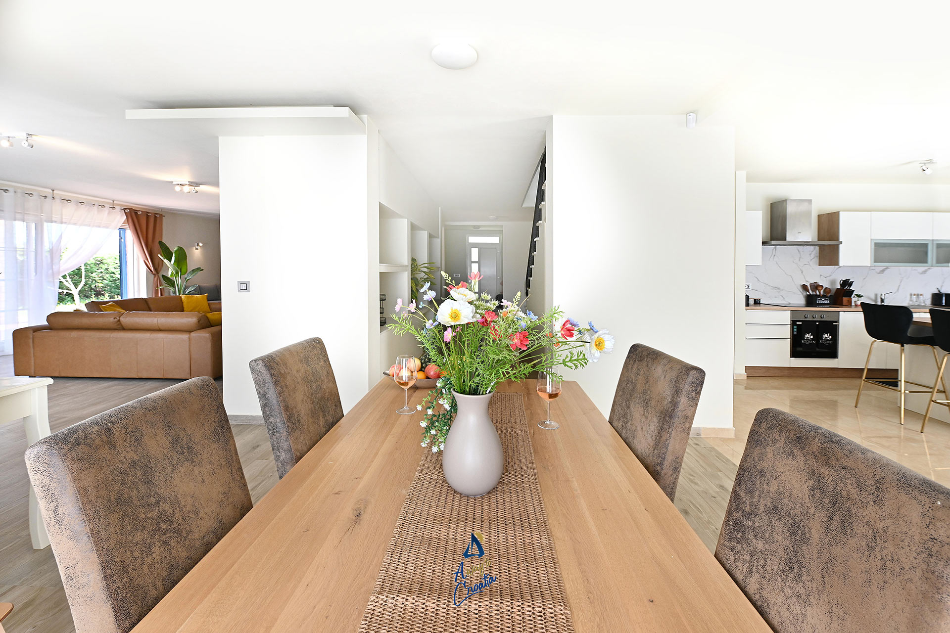 Willkommen in der Villa Maria – Ihrer privaten Oase in Vilanija in der Nähe des wunderschönen Umag, Kroatien.Egal, ob Sie mit Familie oder Freunden reisen, dieser charmante Rückzugsort ist der ideale Zufluchtsort für bis zu 8 Gäste mit einer maximalen Kapazität von 9. Hier ist jeder Moment auf Entspannung, Komfort und unvergessliche Erinnerungen ausgelegt.