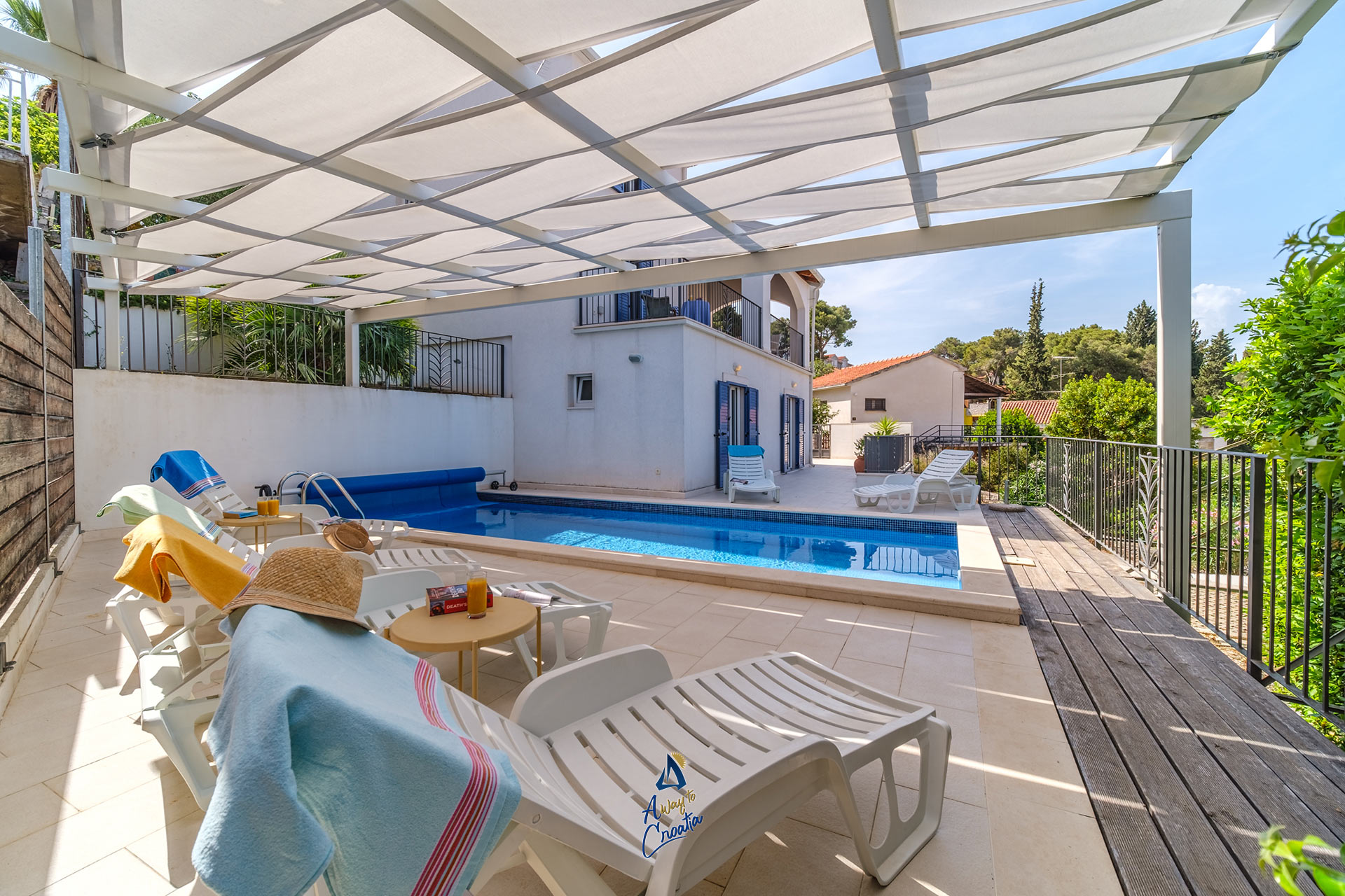 Erleben Sie das dalmatinische Paradies in der Villa Milna Bay auf der wunderschönen Insel Brač, einer Oase mit vier Schlafzimmern für bis zu acht Personen, einem privaten beheizten Pool und einer atemberaubenden Aussicht!