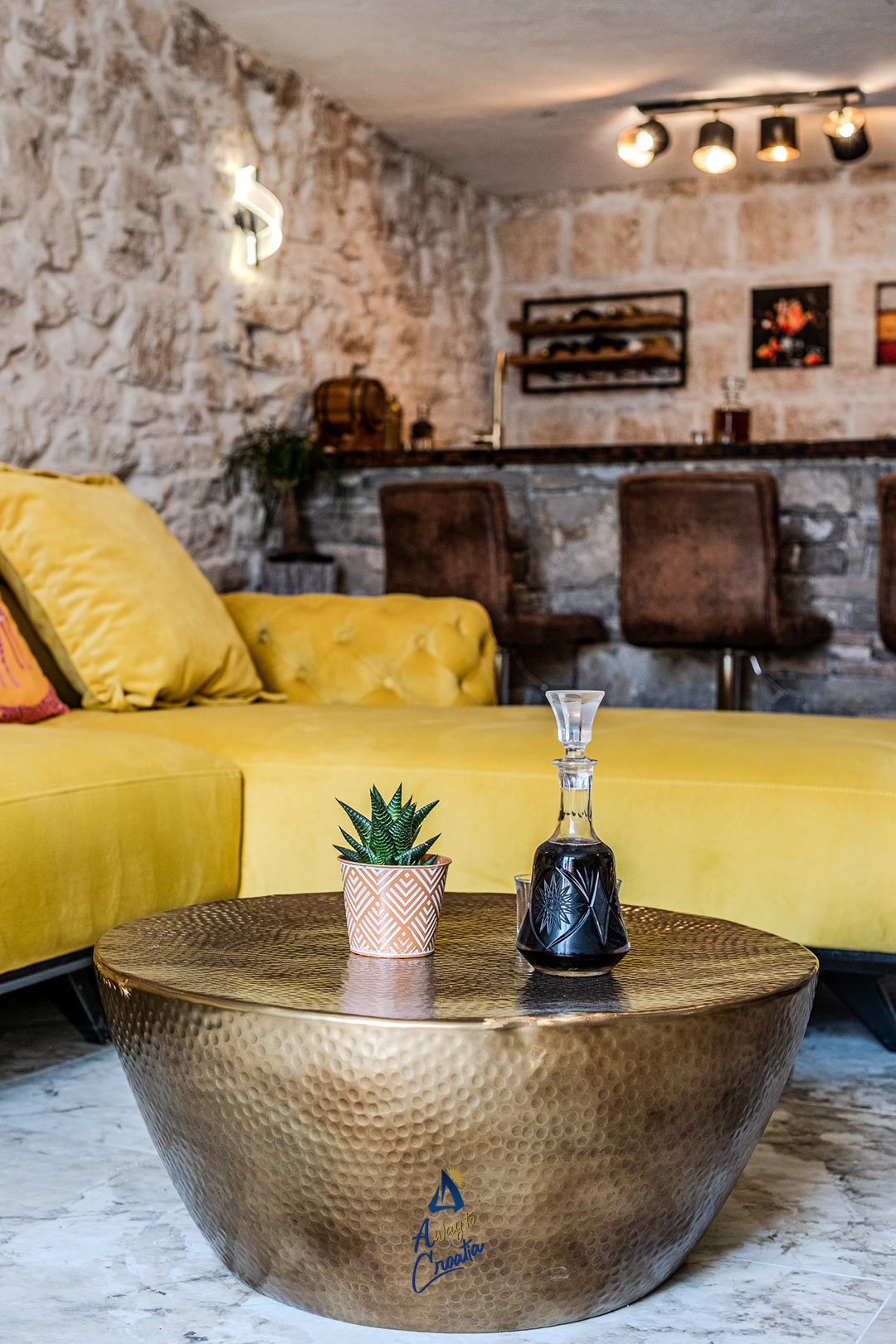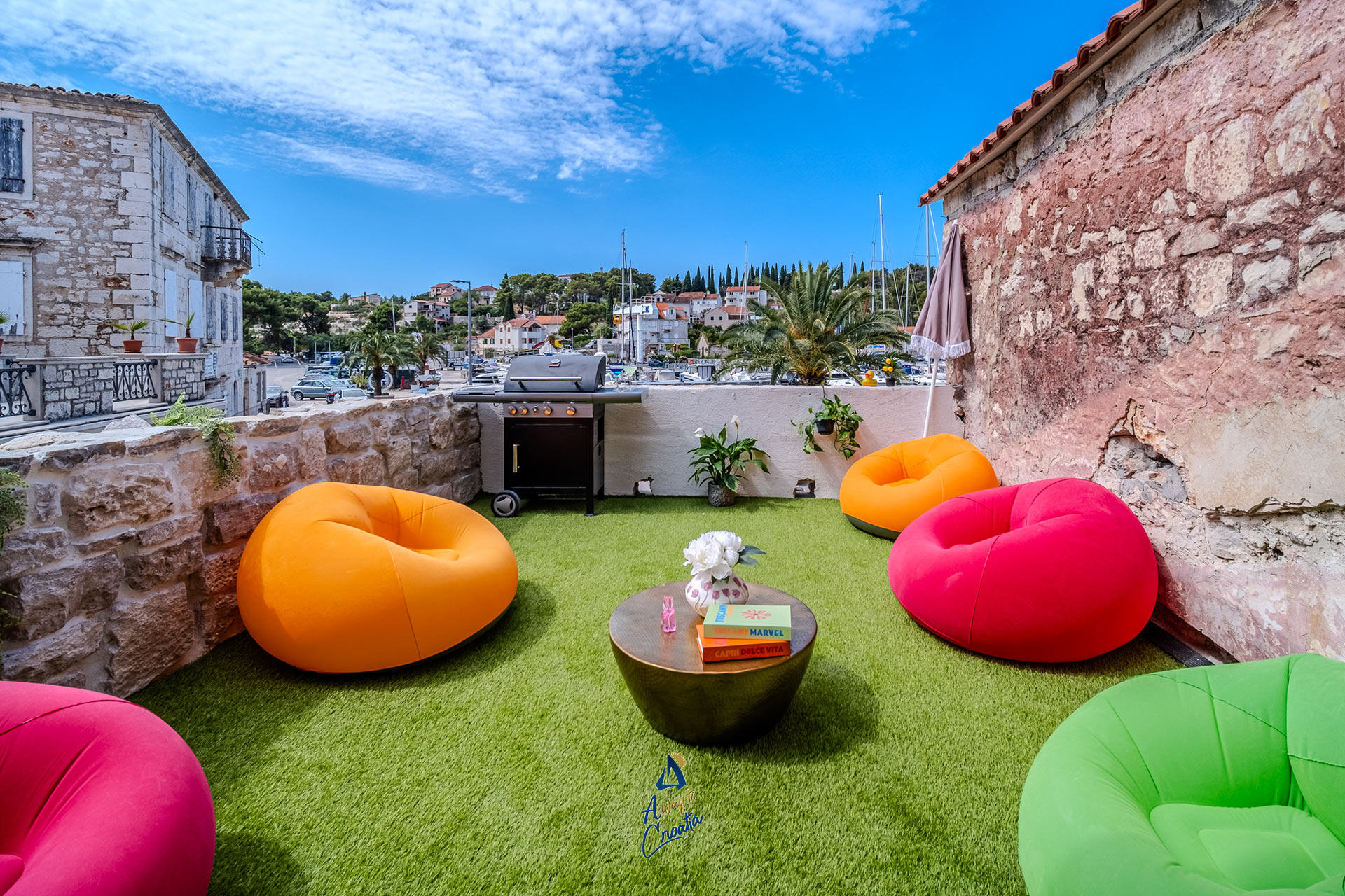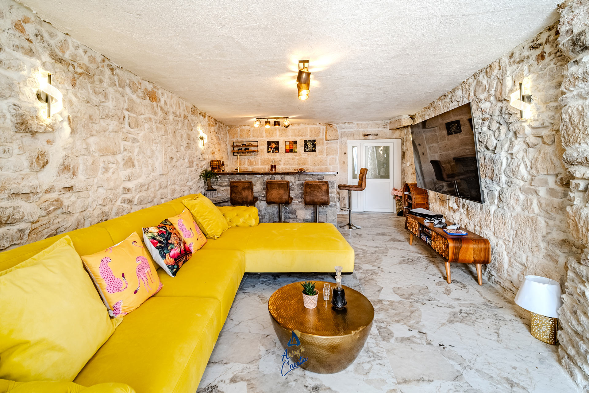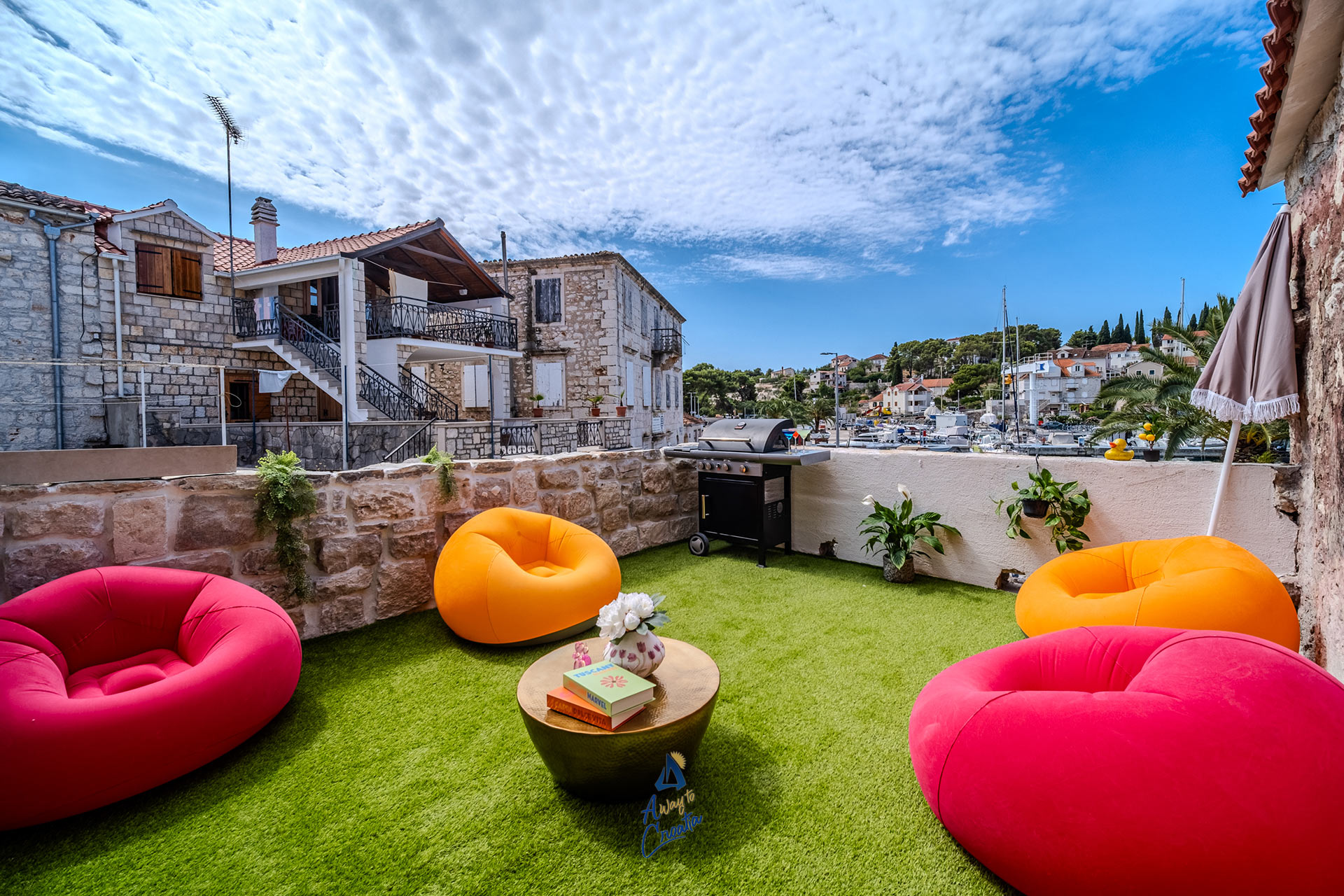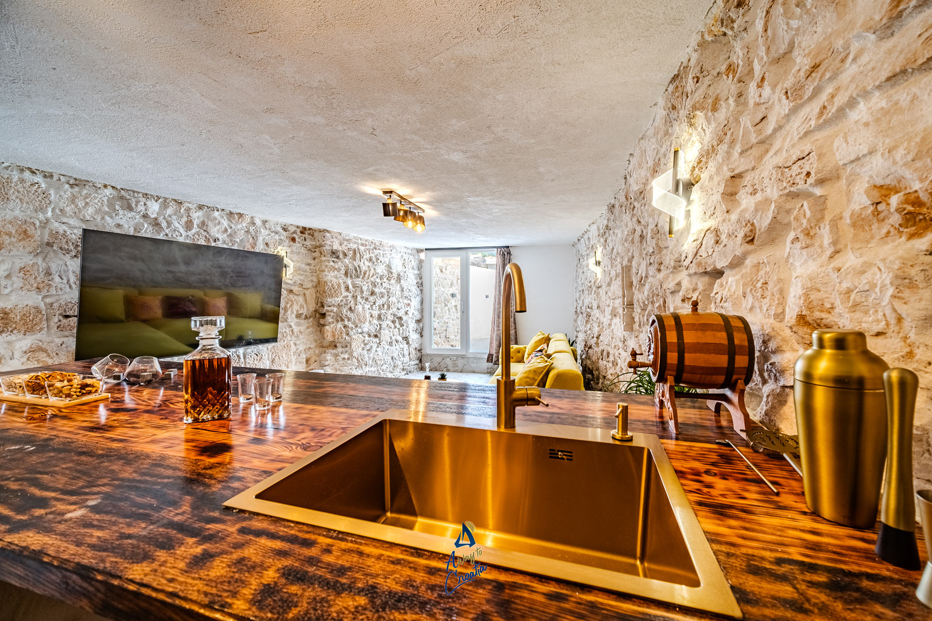 Luxusvilla Unikat – Weil gewöhnlich noch nie Ihr Stil war Versteckt im Herzen von Milna ist die Luxusvilla Unikat mehr als nur eine Unterkunft – sie ist ein besonderes Erlebnis für die ganze Familie , das den Charme eines alten Ortes mit gewagtem, modernem Design verbindet. Dieses einzigartige Anwesen ist eine sorgfältig restaurierte Steinvilla , in der authentische dalmatinische Architektur auf kunstvolle, avantgardistische Innenräume trifft. Treten Sie ein und entdecken Sie eine Welt, in der jahrhundertealte Steinmauern und rustikale Holzbalken mühelos mit modernen Möbeln, eklektischen Kunstwerken und unerwarteten Designelementen harmonieren. Jeder Winkel der Villa erzählt eine Geschichte – von der historischen Seele des Gebäudes bis hin zu seiner verspielten, luxuriösen Umgestaltung . Die Villa bietet drei wunderschön gestaltete Schlafzimmer und drei elegante Badezimmer und bietet Familien oder Gruppen von Freunden die perfekte Balance aus Komfort und Privatsphäre. Beginnen Sie Ihren Morgen mit einem Panoramablick auf die Adria von der privaten Whirlpool-Terrasse mit Essbereich im Freien oder genießen Sie Ihren abendlichen Drink, während die Sonne hinter dem Horizont versinkt. Die einladende Lounge-Terrasse der Villa mit Grill eignet sich perfekt für Familienessen unter freiem Himmel oder gemütliche Nachmittagstreffen. Wer Unterhaltung sucht, findet in der Villa Unikat das Passende: Das stilvolle Wohnzimmer verfügt über eine private Bar , einen Flachbildfernseher mit PlayStation und eine Auswahl an Brettspielen – ideal für gemütliche Abende oder Spaß an Regentagen. Bleiben Sie während Ihres Aufenthalts aktiv und nutzen Sie das private Fitnessstudio , das für Ihr tägliches Training komplett ausgestattet ist. Ob Sie im Whirlpool entspannen, einen Spieleabend mit der Familie im Wohnzimmer genießen oder auf der oberen Terrasse Cocktails mixen, die Villa Unikat bietet eine nahtlose Mischung aus Komfort, Stil und Persönlichkeit . Mutig, anders und zutiefst unvergesslich – die Villa Unikat ist nicht nur Ihr Aufenthaltsort, sondern die Art und Weise, wie Sie Milna erleben.
