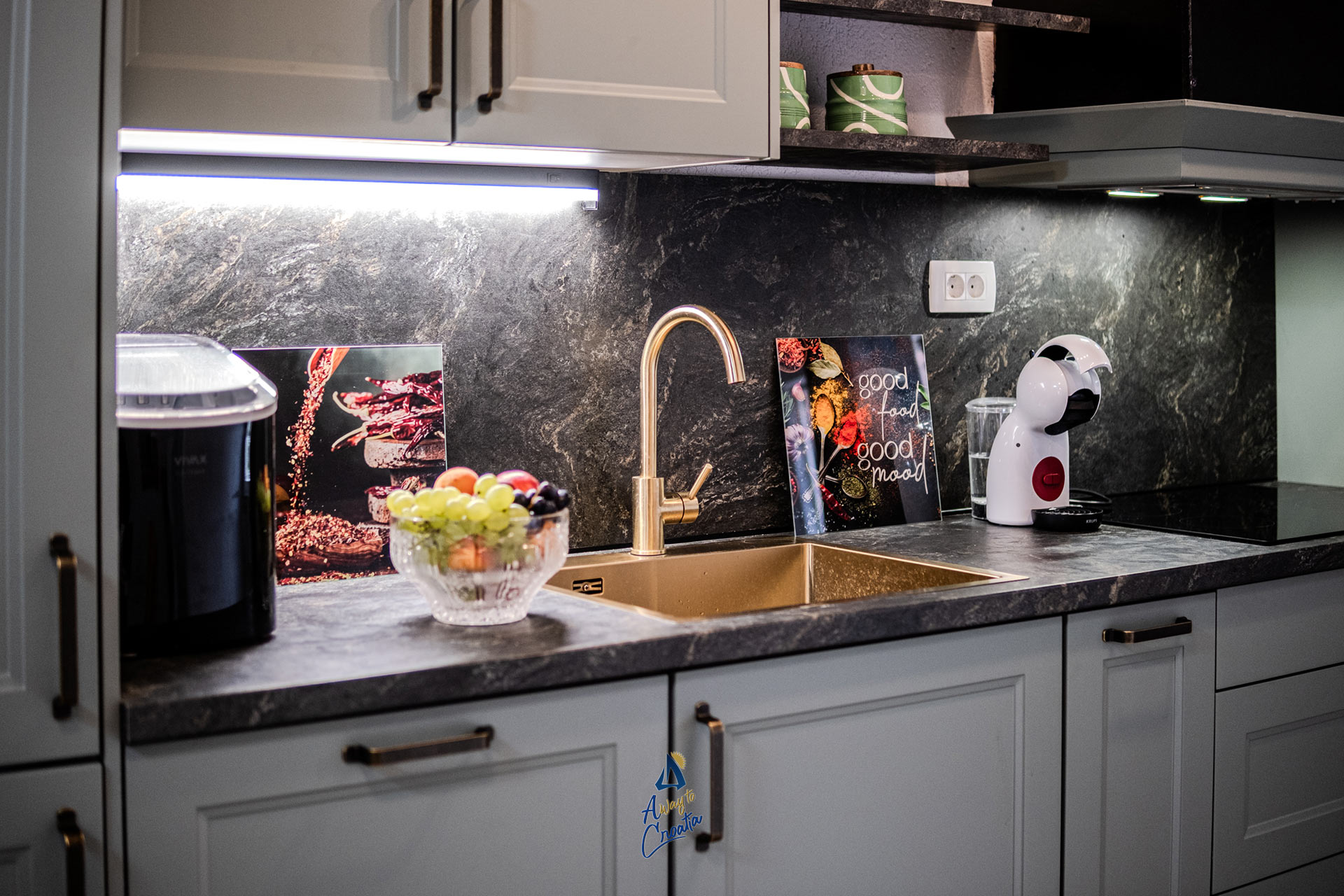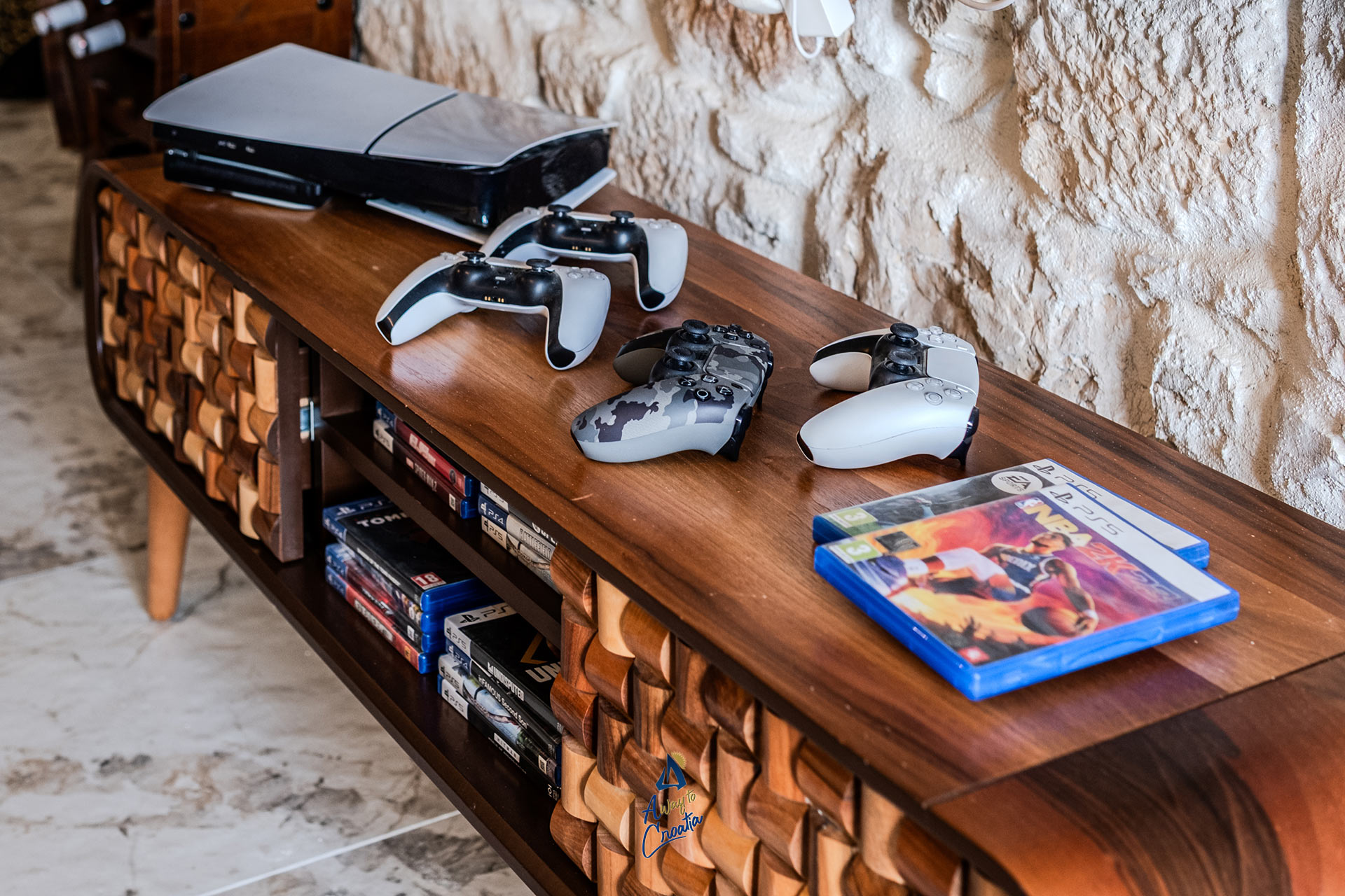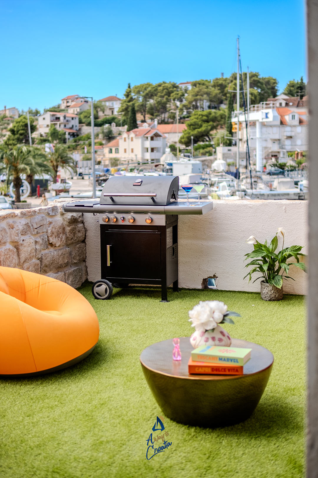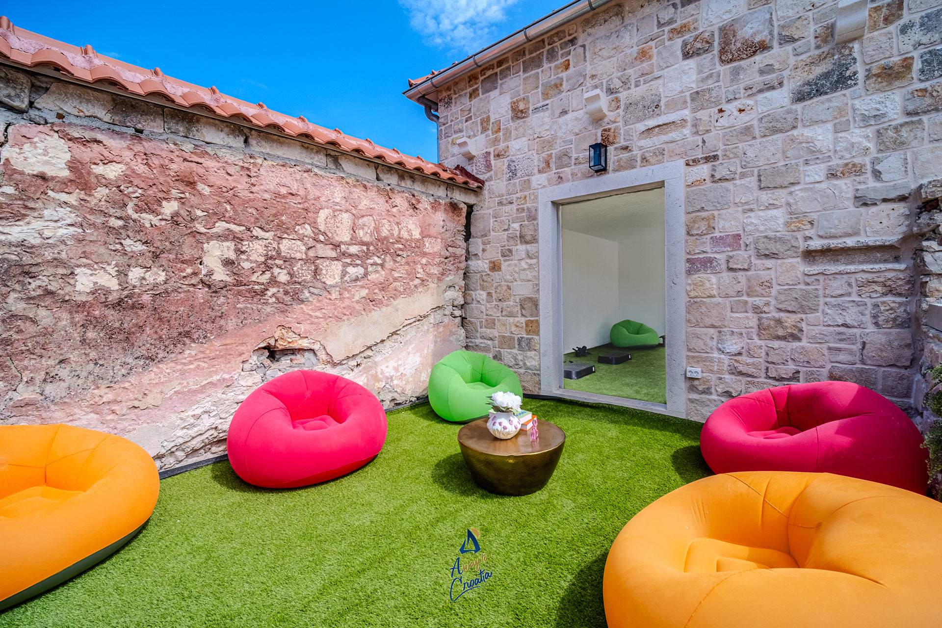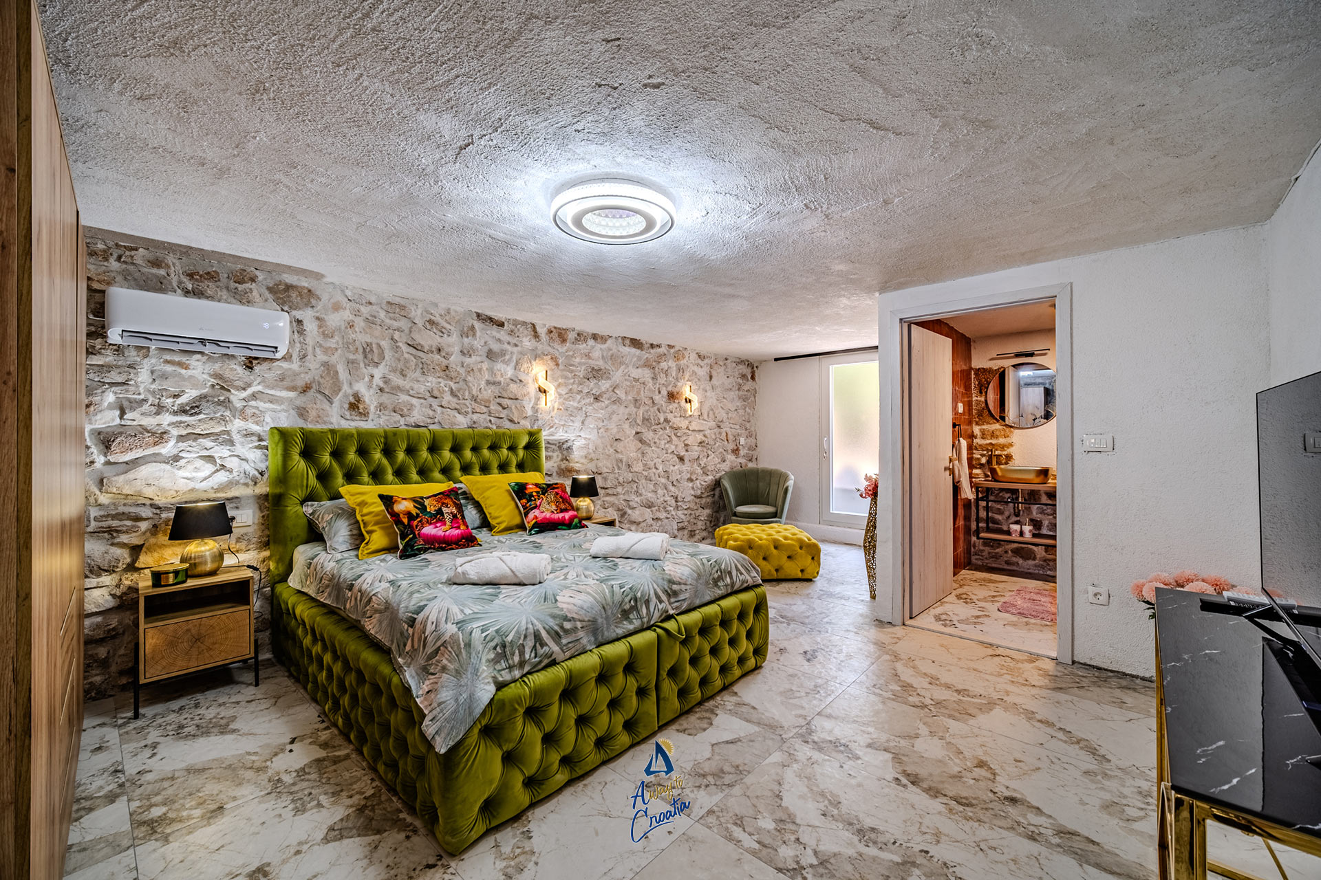 Luxusvilla Unikat – Weil gewöhnlich noch nie Ihr Stil war Versteckt im Herzen von Milna ist die Luxusvilla Unikat mehr als nur eine Unterkunft – sie ist ein besonderes Erlebnis für die ganze Familie , das den Charme eines alten Ortes mit gewagtem, modernem Design verbindet. Dieses einzigartige Anwesen ist eine sorgfältig restaurierte Steinvilla , in der authentische dalmatinische Architektur auf kunstvolle, avantgardistische Innenräume trifft. Treten Sie ein und entdecken Sie eine Welt, in der jahrhundertealte Steinmauern und rustikale Holzbalken mühelos mit modernen Möbeln, eklektischen Kunstwerken und unerwarteten Designelementen harmonieren. Jeder Winkel der Villa erzählt eine Geschichte – von der historischen Seele des Gebäudes bis hin zu seiner verspielten, luxuriösen Umgestaltung . Die Villa bietet drei wunderschön gestaltete Schlafzimmer und drei elegante Badezimmer und bietet Familien oder Gruppen von Freunden die perfekte Balance aus Komfort und Privatsphäre. Beginnen Sie Ihren Morgen mit einem Panoramablick auf die Adria von der privaten Whirlpool-Terrasse mit Essbereich im Freien oder genießen Sie Ihren abendlichen Drink, während die Sonne hinter dem Horizont versinkt. Die einladende Lounge-Terrasse der Villa mit Grill eignet sich perfekt für Familienessen unter freiem Himmel oder gemütliche Nachmittagstreffen. Wer Unterhaltung sucht, findet in der Villa Unikat das Passende: Das stilvolle Wohnzimmer verfügt über eine private Bar , einen Flachbildfernseher mit PlayStation und eine Auswahl an Brettspielen – ideal für gemütliche Abende oder Spaß an Regentagen. Bleiben Sie während Ihres Aufenthalts aktiv und nutzen Sie das private Fitnessstudio , das für Ihr tägliches Training komplett ausgestattet ist. Ob Sie im Whirlpool entspannen, einen Spieleabend mit der Familie im Wohnzimmer genießen oder auf der oberen Terrasse Cocktails mixen, die Villa Unikat bietet eine nahtlose Mischung aus Komfort, Stil und Persönlichkeit . Mutig, anders und zutiefst unvergesslich – die Villa Unikat ist nicht nur Ihr Aufenthaltsort, sondern die Art und Weise, wie Sie Milna erleben.