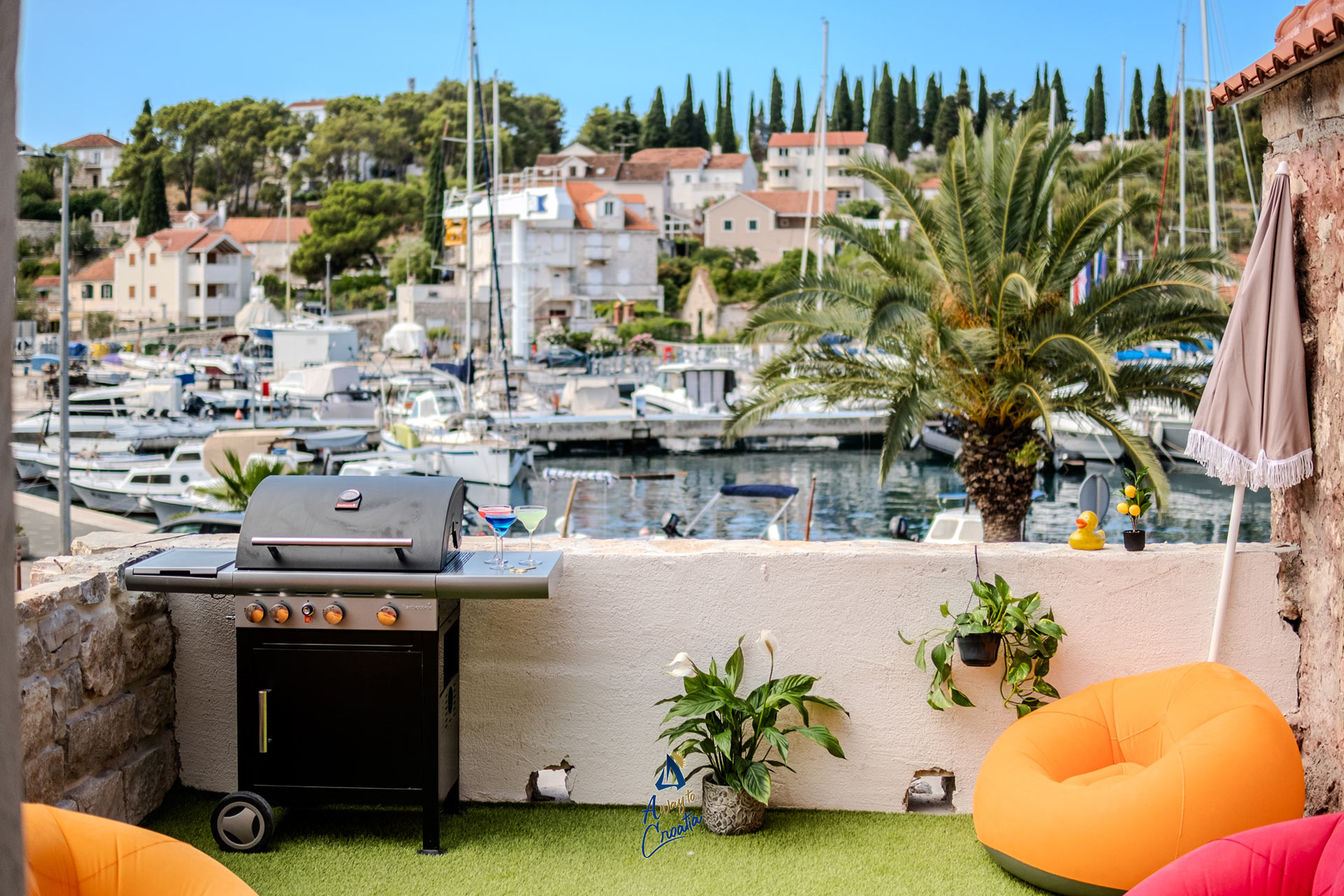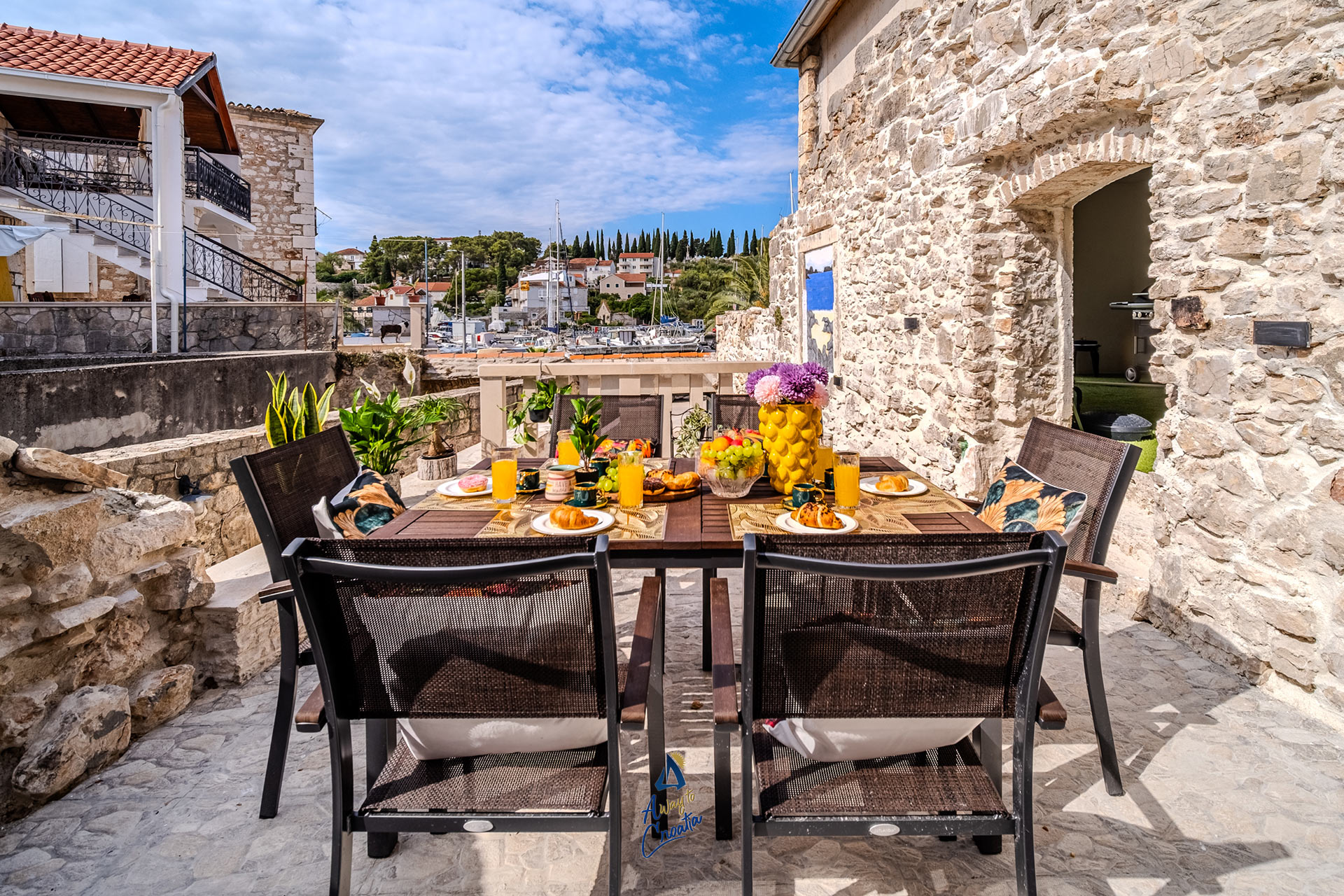 Erleben Sie den kroatischen Charme in der Villa Unikat, einer einzigartigen Villa im Zentrum von Milna auf Brač. Sie bietet Komfort für 6 Gäste, ist haustierfreundlich und verfügt über eine atemberaubende Whirlpool-Terrasse und eine geräumige Lounge-Terrasse mit Blick auf den lebhaften Yachthafen und die schimmernde Adria . Perfekt zum Entspannen, Essen und Genießen der Atmosphäre der dalmatinischen Küste.