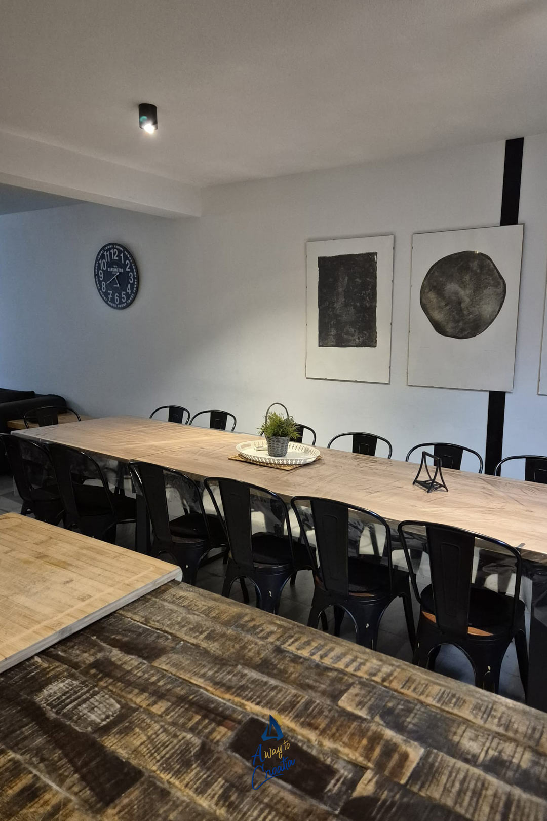 Behind the house, you’ll find a private pool, a large dining table for 16 guests, and a barbecue area, perfect for enjoying long summer evenings together.