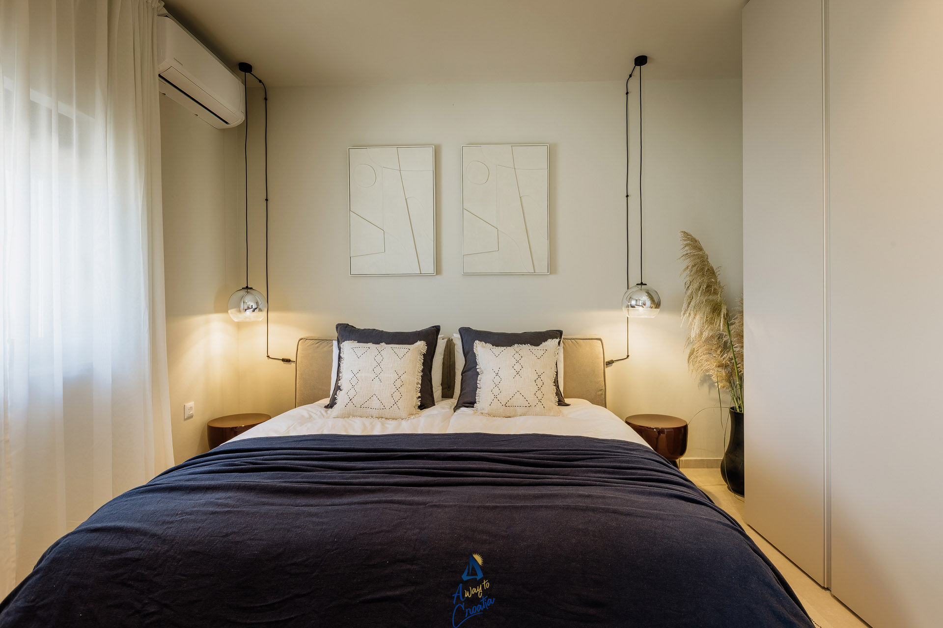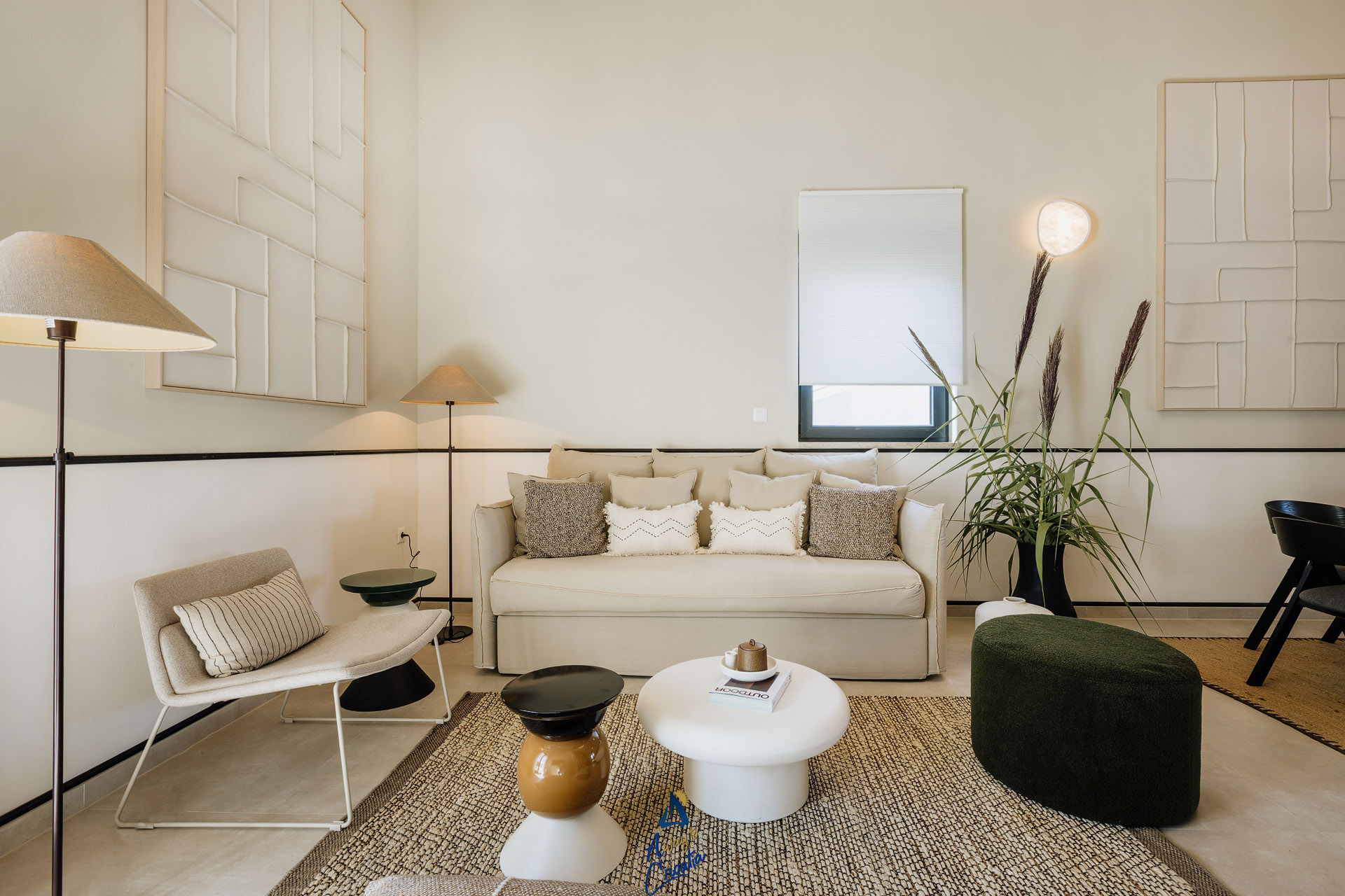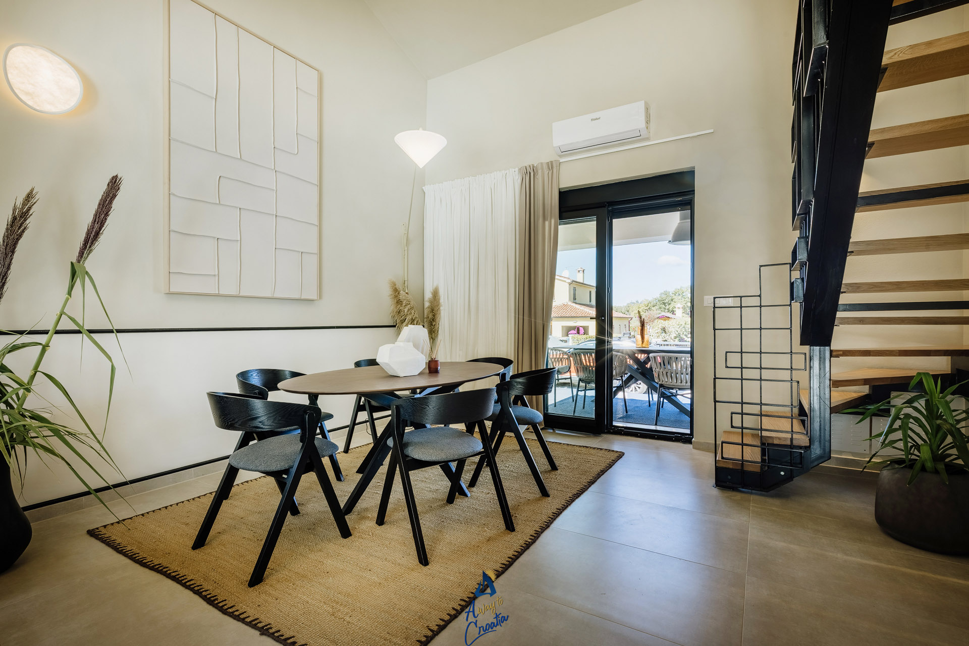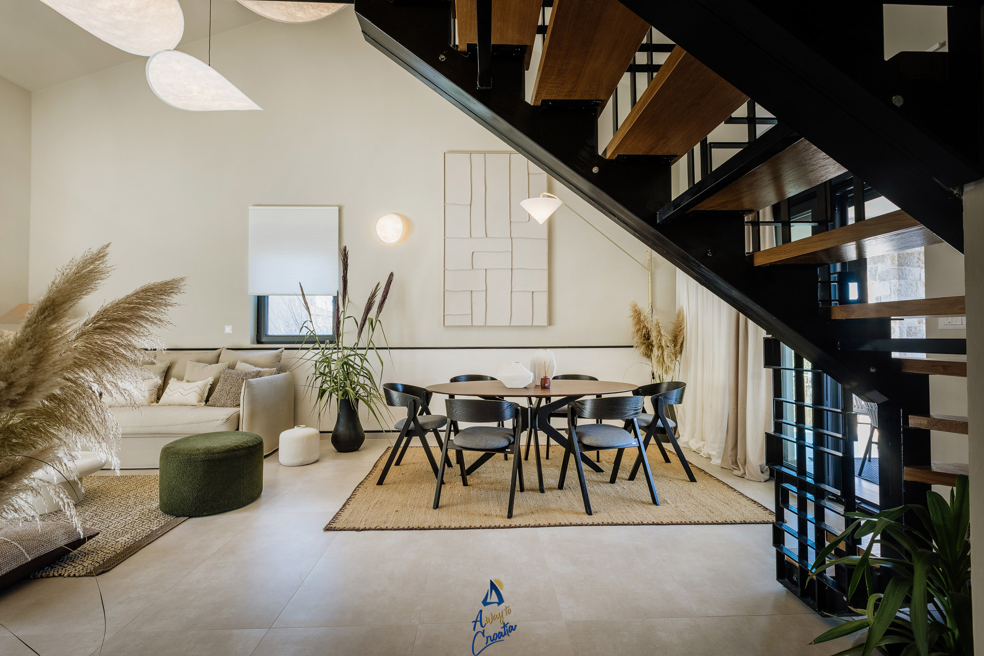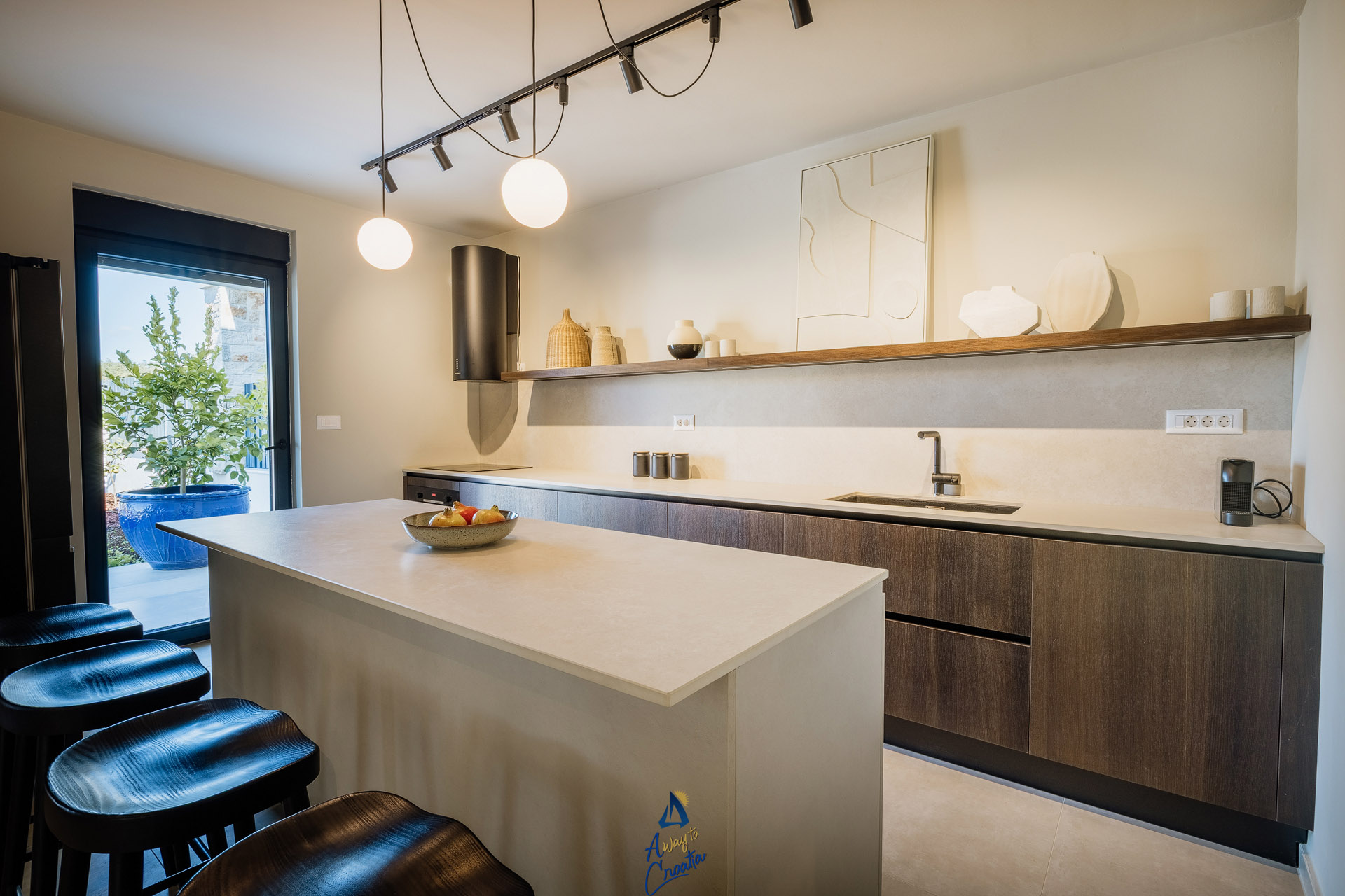 At the heart of the villa lies a bright and welcoming living room, perfect for cozy evenings, games, or simply relaxing with loved ones. The living room also features a sofa bed, where an additional 2 guests can sleep comfortably. From here, step directly out onto the sun-kissed terrace where the magic truly happens.
